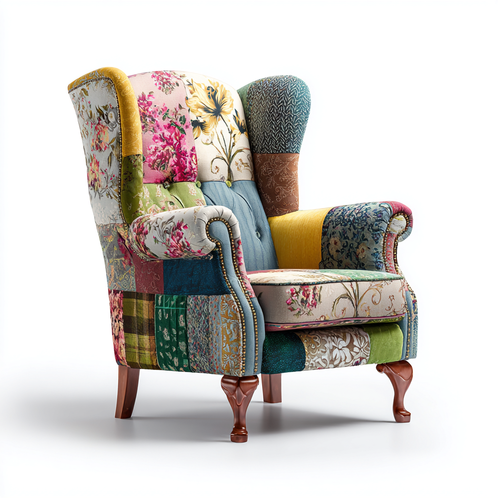 Fauteuil en tissu patchwork 78x85x105 cm - Multicolore - Style classique avec dossier haut