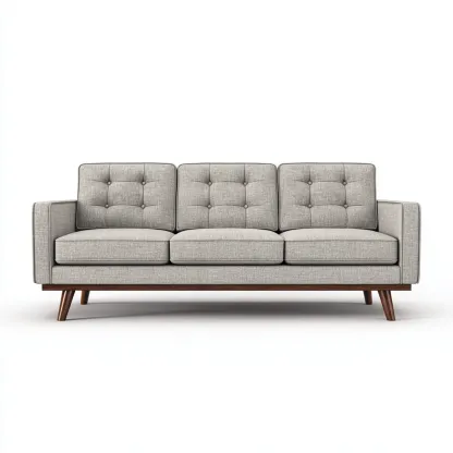 Revêtement en tissu de couleur gris clair, agréable au toucher et adapté à un usage quotidien. Structure interne robuste assurant une bonne stabilité. Pieds en bois massif avec finition naturelle, offrant un maintien fiable et une touche chaleureuse.